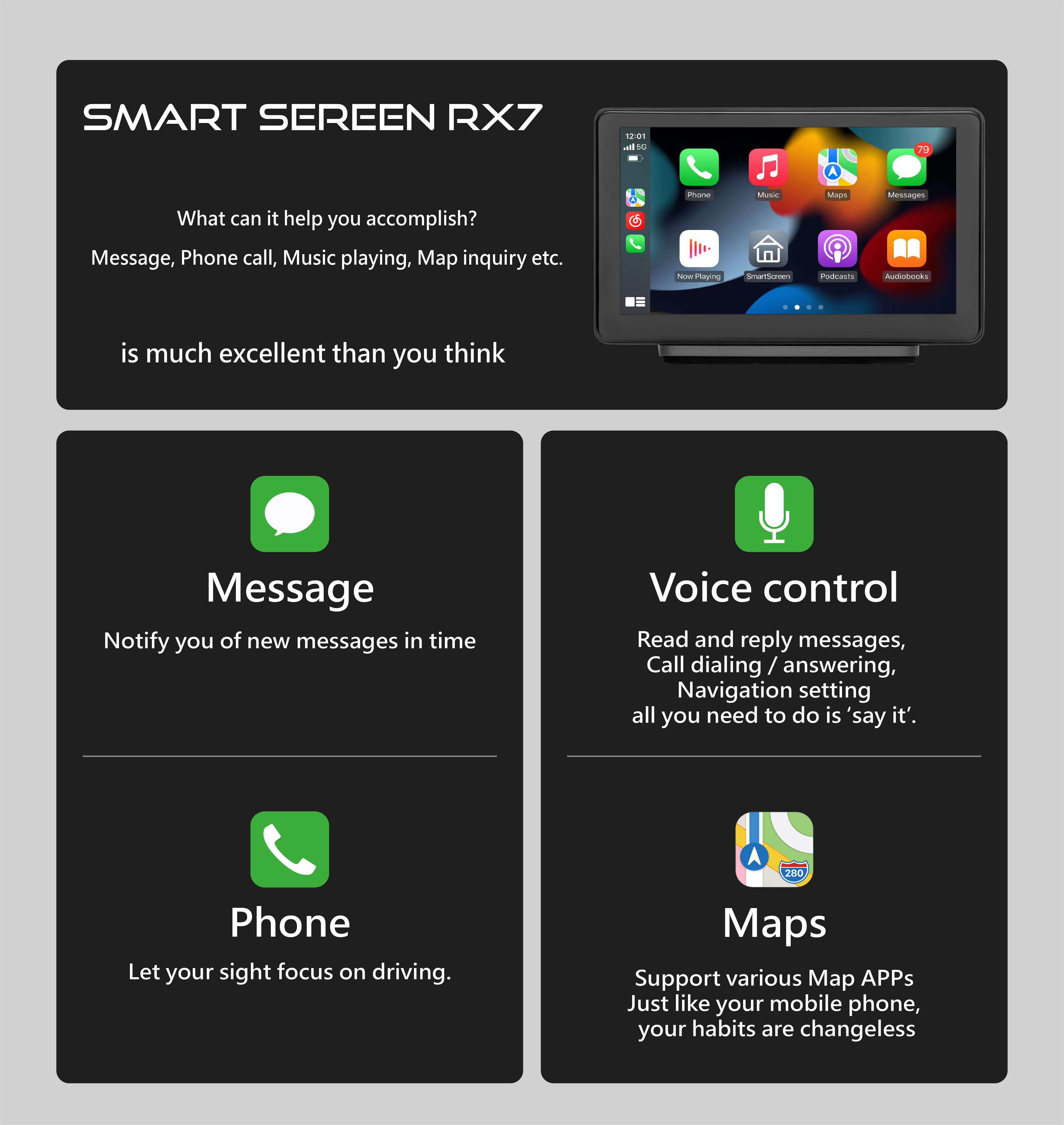 For driving safety, please turn on Siri or Google assistant. Most functions can be controlled by voice.